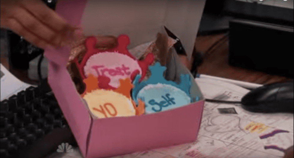 Whether you are a sporty person or not, relieving your stress physically can turn out to be really healthy and fun. There are thousands of activities to try with your friends- from yoga and kickboxing to walking around town and jogging at the track- and this may become a regular thing for you both. You may feel like Andy here when you do it, but it may make you feel better when you're stuffing your face later.