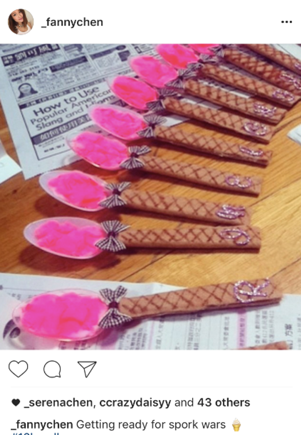 I don't think you know how hard it was to explain to my friends at other schools why I had multiple stab wounds from decorated plastic utensils.