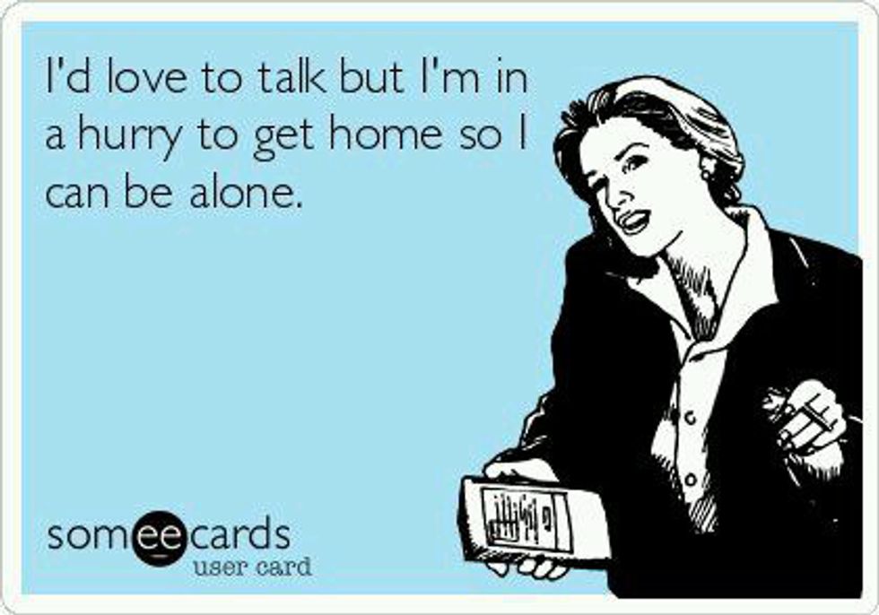 Socializing can be physically draining for us and we simply can’t do it for hours on end. We will get grumpy and unpleasant to be around. Once we have our alone time, we’ll be back to normal. It’s kind of like when you’re extremely hungry and pissed at the world, but as soon as you eat you feel much better.