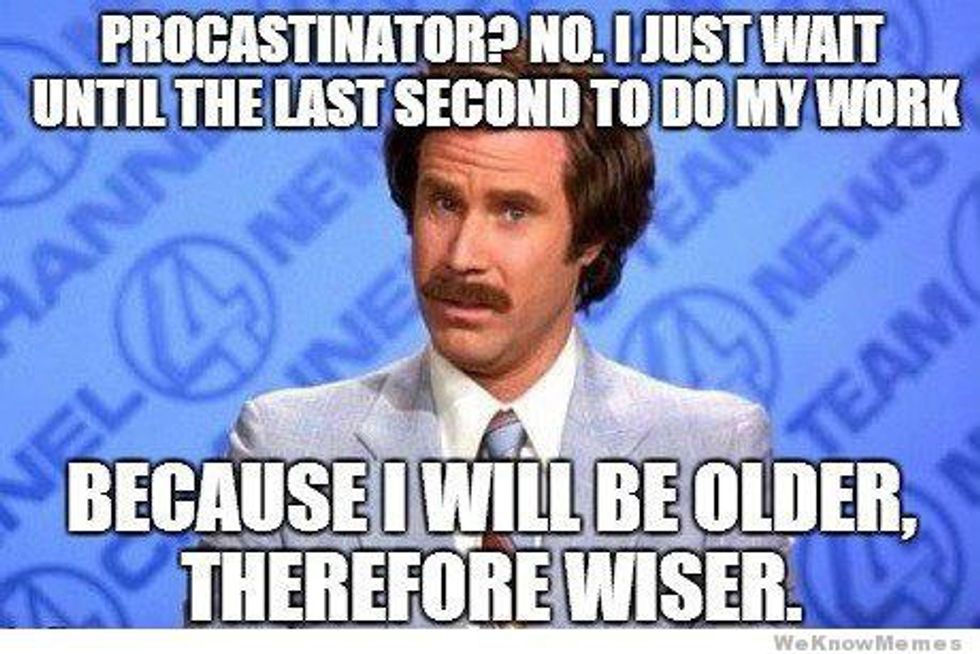 10. Panicking because you waited until the last minute and hate yourself for waiting so long, promising you won't do it next time