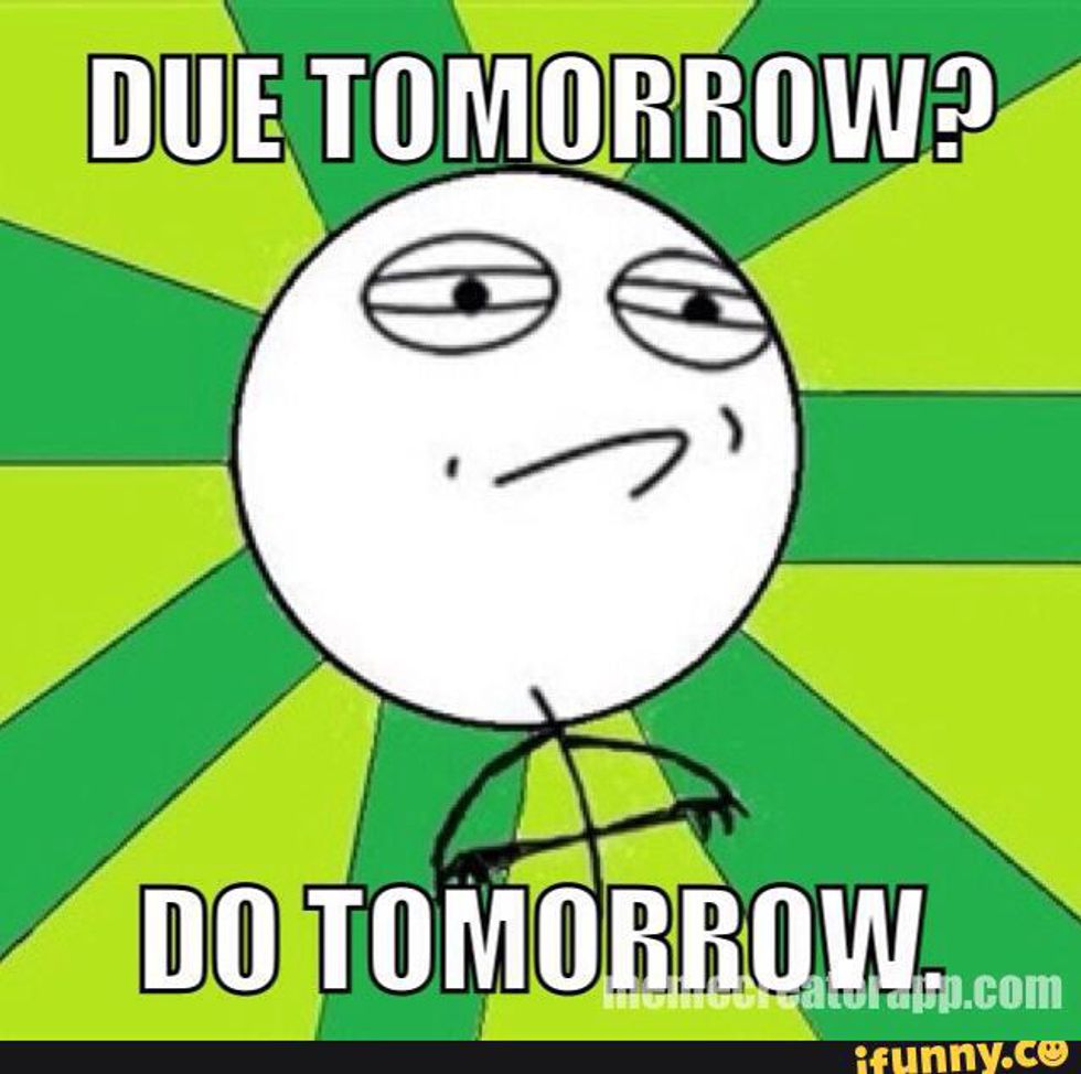 8. Waiting until the day before a project is due to do it, even if it was assigned 3 months ago