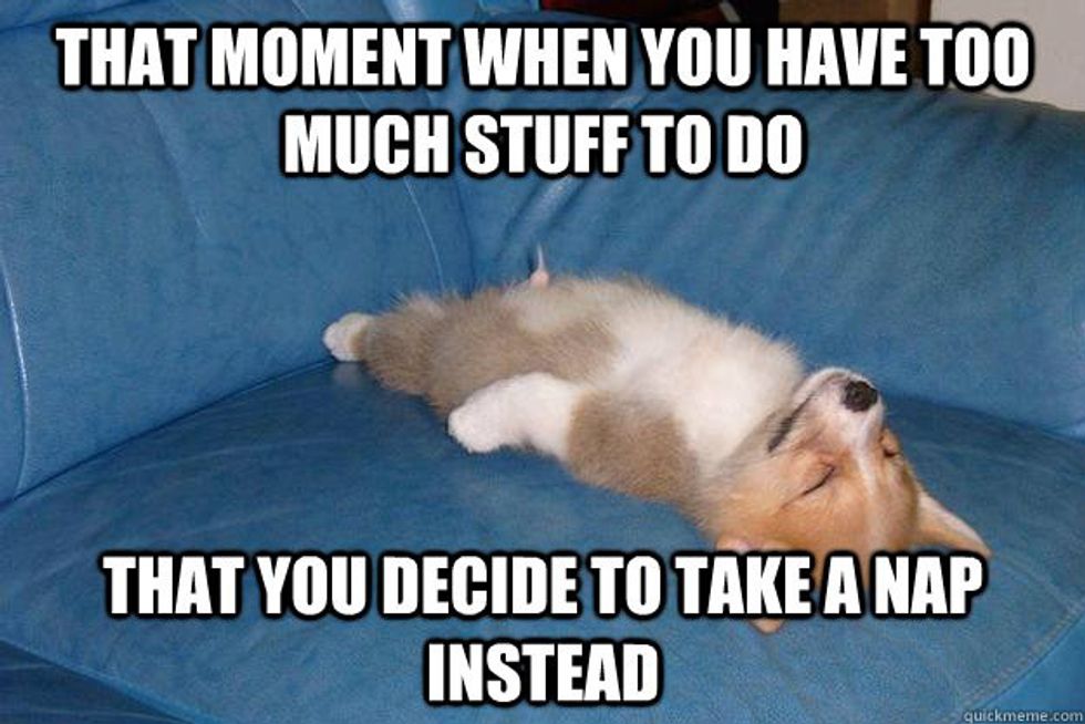 Putting off getting out of bed because you stayed up all night because you procrastinated doing your work until the last minute...I feel you. Just five more minutes please....