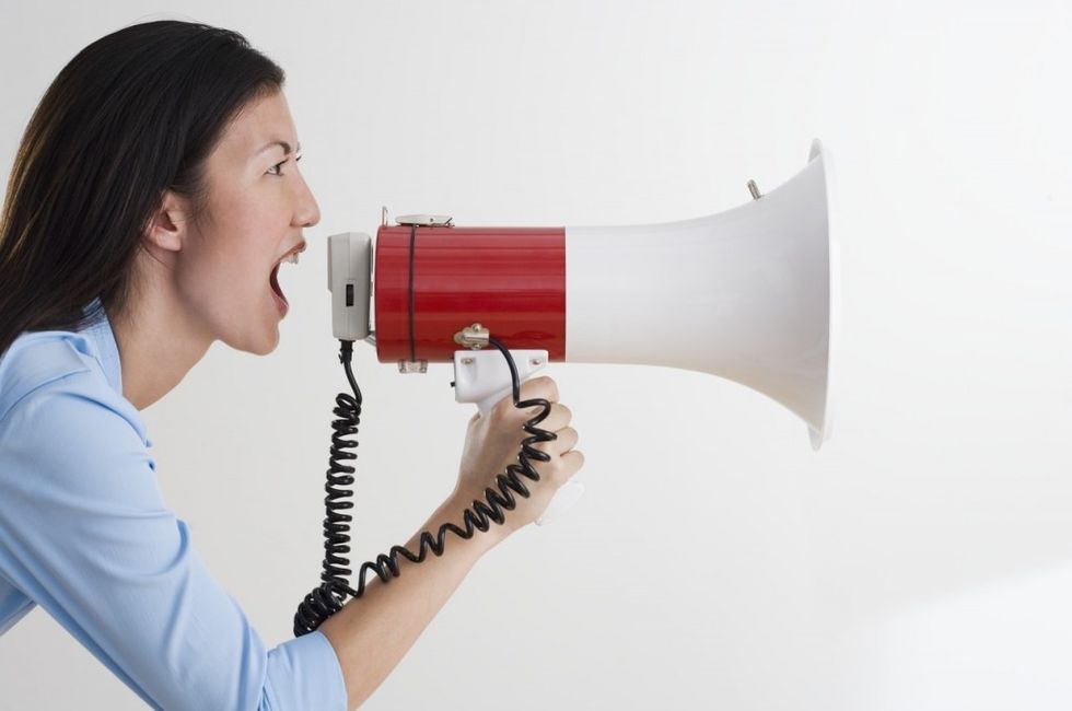 Louder, probably higher pitched as well. You know it makes you sound fake, but you don't care.