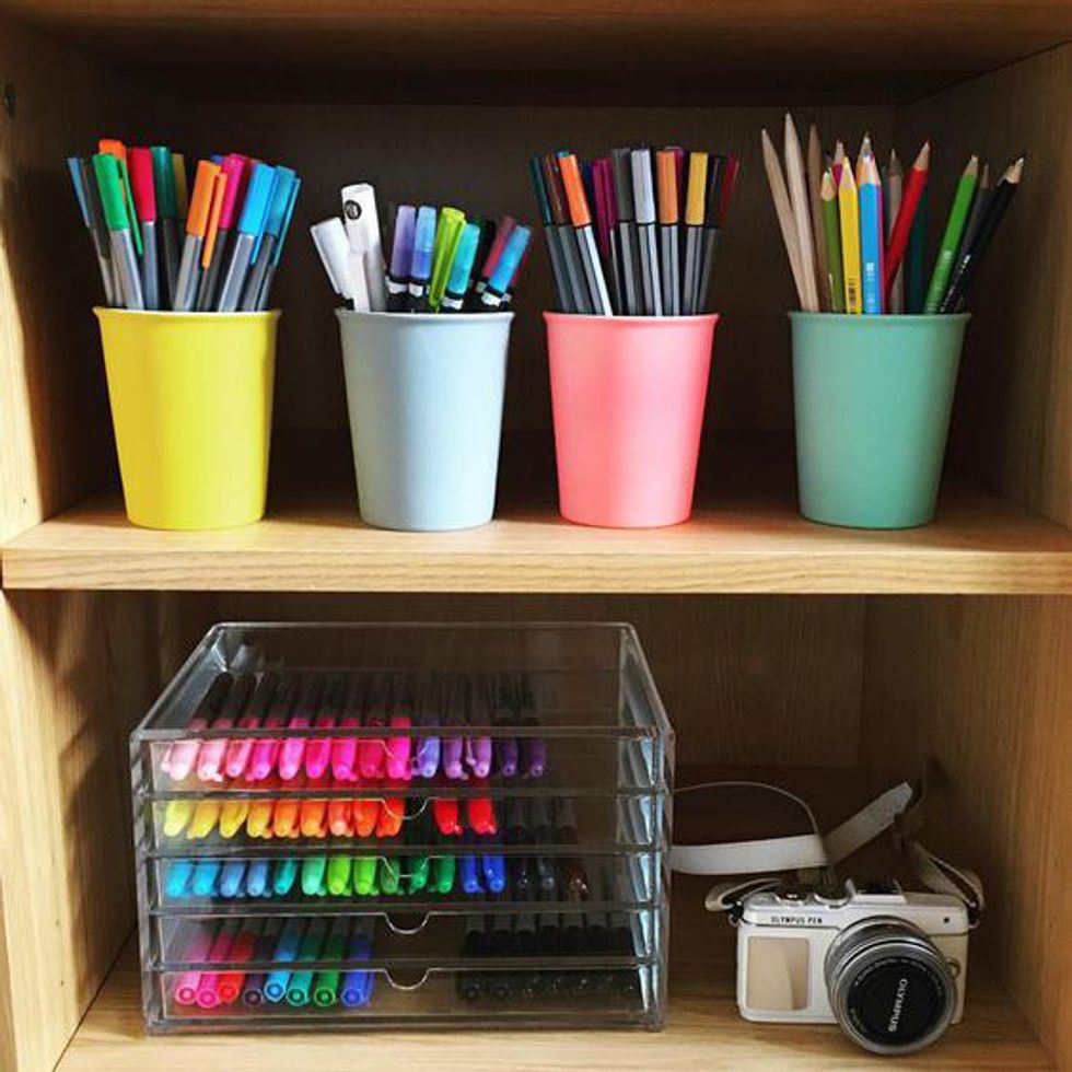 9. Organized your pens, pencils and highlights by width, color and style