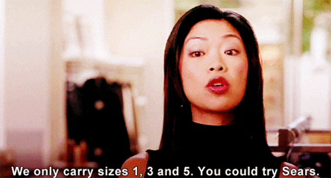 Another tag you should avoid completely. The inconsistency of sizes is ridiculous and too often overlooked by the industry. I've stood in stores and questioned whether I should get something because I wasn't usually that size. It's absurd; I'm a small at American Eagle, a medium at Forever 21, and a XL at Justice--wait.
