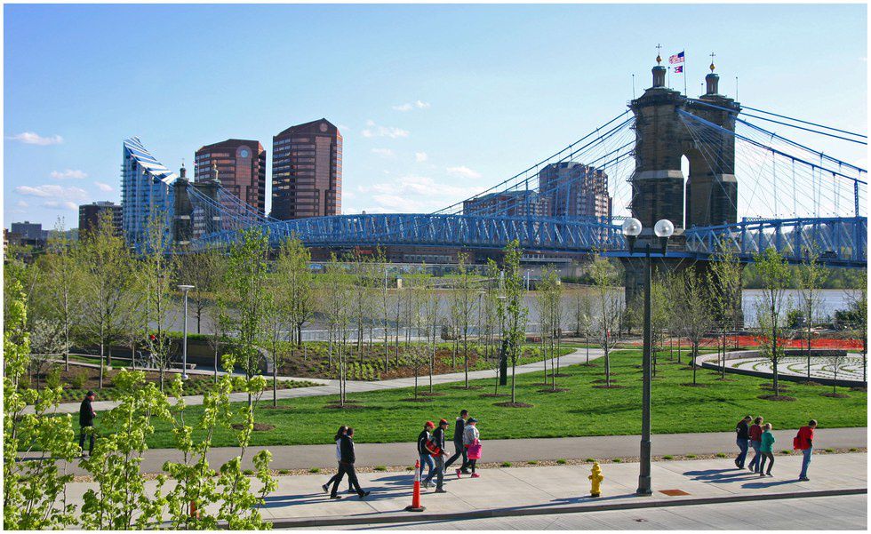 The parks in Cincinnati always have free events put on and many have great views of the city.