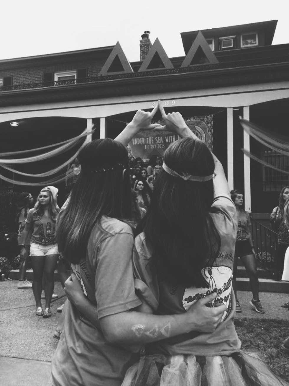 "But wait? We are all sisters, aren't we all best friends forever?" No, as much as that would be amazing, to be best friends with every person in your chapter, it just probably will not be that way. Being a new member this year, I have met a ton of girls, became close with many girls, but there are sill some girls I have yet to meet and some I just figured out who they were. Once I was on Instagram, going through the popular page and clicked on a photo I thought looked nice, I went to the profile of this person who posted the photo and in the bio there was the same sorority as me and the same school as me. I have never met this person, and this girl doesn't even look familiar to me. I don't know how this happened, but I figured I would at least be able to recognize everyone's faces. In some cases, this probably won't happen because there are smaller chapters than mine, some people may know everyone in their sorority chapter. I wish I could know everyone and be close with everyone, but at the end of the day, that isn't how it will be for every single person. But, we are all sisters and will always have each others backs and always be there where there is a shoulder needed to cry on. I love this about sisterhood because you may not be close with everyone, but your sisters will be there for you if you ever need somebody.