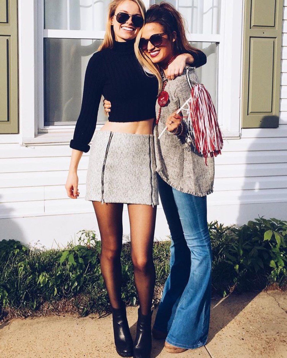 If you’re looking to show a little bit of skin without coming off as trashy, an off the shoulder outfit is perfect for you this Saturday. With the hot sun beating down on you as you laugh and cut up with your college pals, it can be miserable at times. But with your shoulders out, catching the sun rays and feeling the breeze blow through your hair and across your back every once in a while is such a relief. You can match your flouncy off the shoulder top with a skort, jean skirt, or even flare jeans.