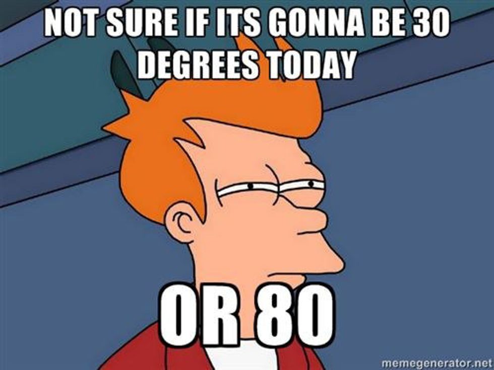 6. You go to class in sunny, 70-degree weather and come home in a monsoon.