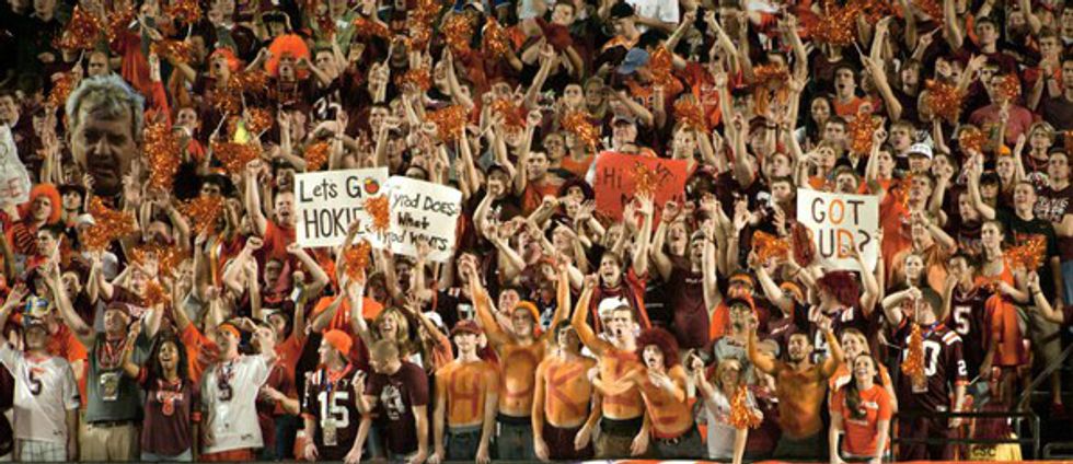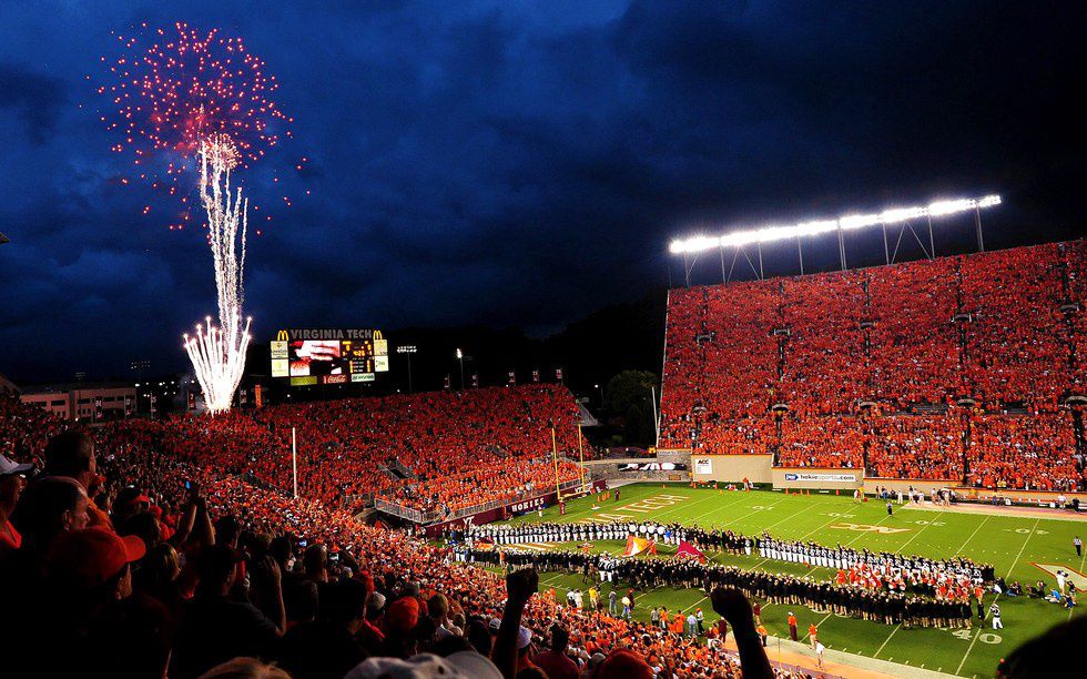 The amount of school spirit that Virginia Tech has is indescribable. Start practicing jumping on bleachers, the Hokie Pokey, and not sitting for about four hours because you'll be doing a lot of that for the next four years.