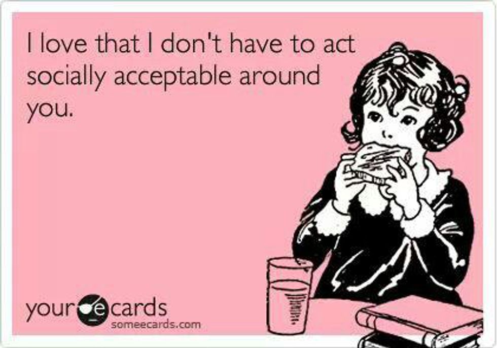 Seriously though. You both eventually develop the ability to know what the other is thinking about a person or a certain situation solely via their facial expression or the tone of their voice. A mere glance at one another can say so many things, such as, "omg Sally is being so annoying," or "when is this guy ever gonna stop talking about himself?"