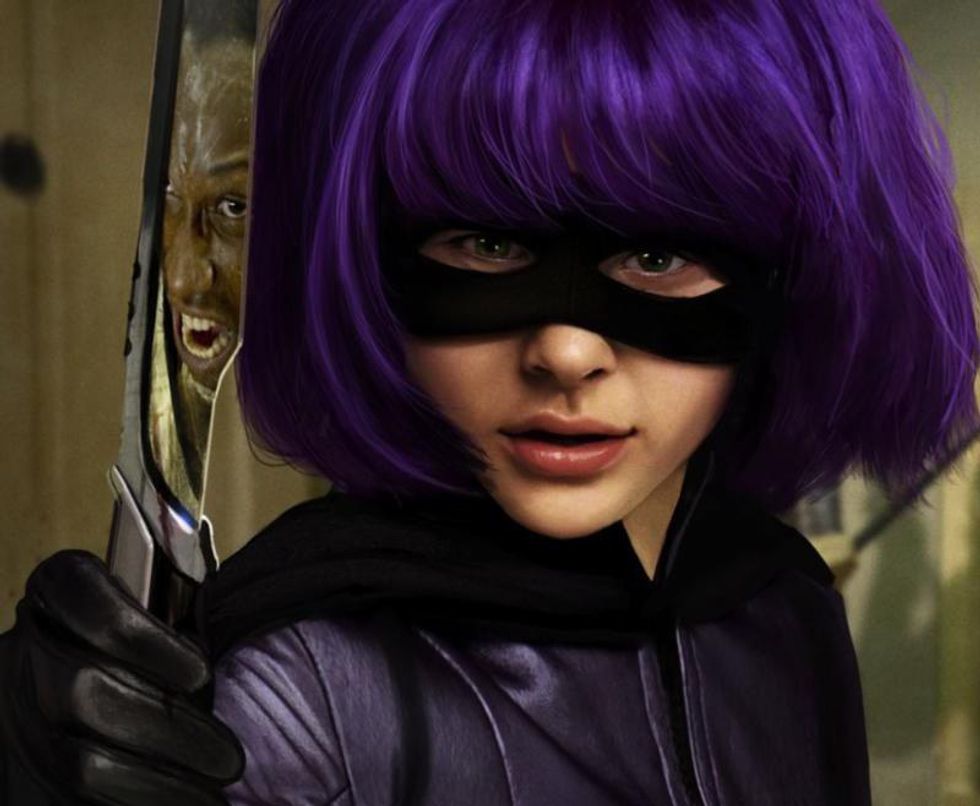 My hair looked like Hit Girl's hair, from the movie "Kick-Ass." Lush and vivid purple, it made me feel exactly like she looks in this picture right here. Nothing could bring me down — not even random people asking me stupid questions like this next one.