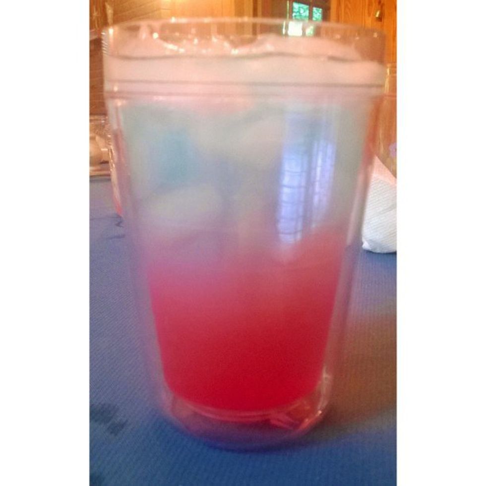 First, you want to fill whatever glass or cups you have full of ice. When I say full, I mean to the brim. I’ve noticed that the ice helps the drink colors separate better. Then, pour in the Cran-Apple Juice! Fill up the cup 1/3 of a way full. Next, pour in the Pina Colada! Pour it slowly onto the ice, so it doesn’t mix with the Cran-Apple too bad. Then is the G2 Gatorade. You want to make sure it isn’t just PowerAde or regular Gatorade because it won’t work correctly. Pour the G2 Gatorade softly like the Pina Colada. Then you’re done! It’s that easy, it looks cute, and it tastes amazing!