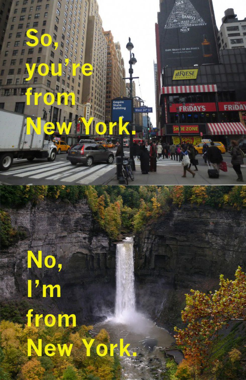 People are from places that you have never even heard of, and they are usually just as bewildered by where you are from. Oh, and you'll absolutely participate in passionate arguments on what qualifies as “upstate."