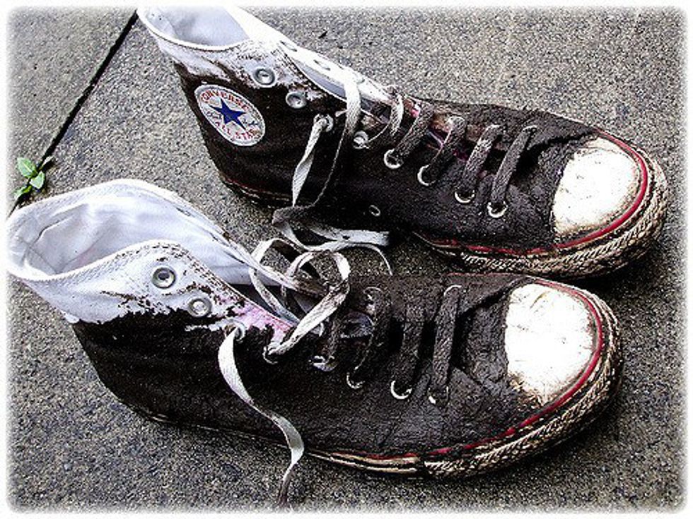 I promise you that your shoes will get ruined. Rain boots are probably the best option but don't try to wear cute boots or high heels that you love and wear every day. You can't go wrong with converse or gym shoes either. Anything close toed. I strategically wore my navy converse, instead of my white ones, which was definitely the right call.