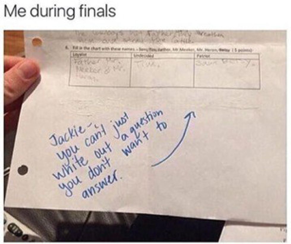 Everyone wants to know how you’re doing. It’s great that people are concerned about your well-being, but you do not want to discuss your grades. Ask me about what I ate yesterday instead. I can write a 10 page paper about that.