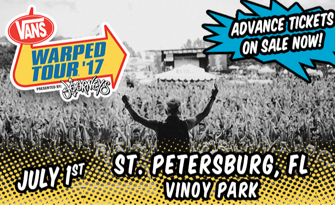 American Authors, Attila, Bowling For Soup, and Never Shout Never are just a few of some of the awesome bands coming to the Tampa Bay area this year for Warped Tour. It's going to be an awesome show so make sure to go ahead and buy your tickets. Plus you have an opportunity to do some good by bringing 3 cans of food, $5, or a used cellphone to be donated to hungry children and can get you into the show early. So don't miss out and make sure to help out!