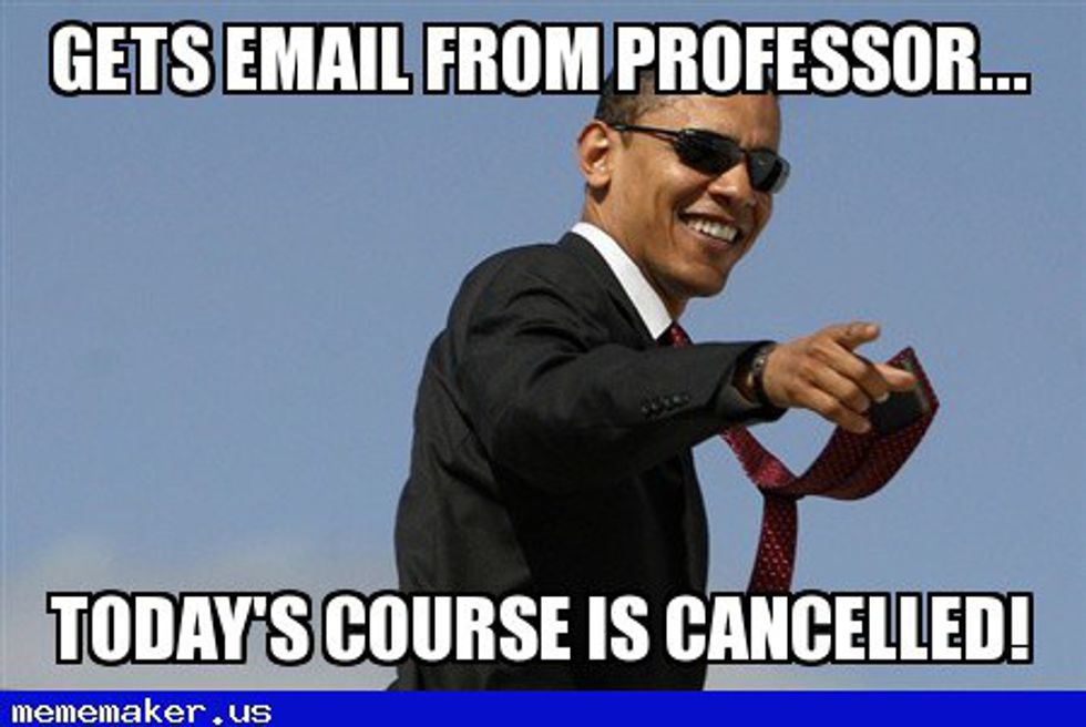 I really enjoy all my professors and courses (for more on this, see No. 5), but there's just some days and weeks at Lafayette that are downright exhausting. And sometimes during those weeks, a professor will let you know last minute that they're heading to a conference or that their child has a fever. Getting one of these emails late at night or waking up to it gives you a bit extra time to study or sleep, which is time that we all can always use.