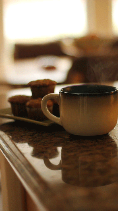 8. Drinking a hot cup of tea.