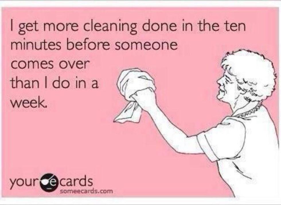 When you suddenly only have 30 minutes to clean before someone gets home, the motivation to clean is suddenly there. They'll never know the difference if you make sure the place looks exactly as it did before they left.