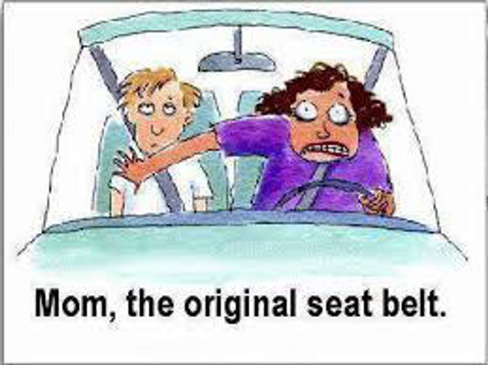 I am personally guilty of doing this. Any time a quick stop is made you stick your arm out across your passenger to prevent them from going through the windshield. Does it work? Who knows, but it's your mom-stinct to do it.