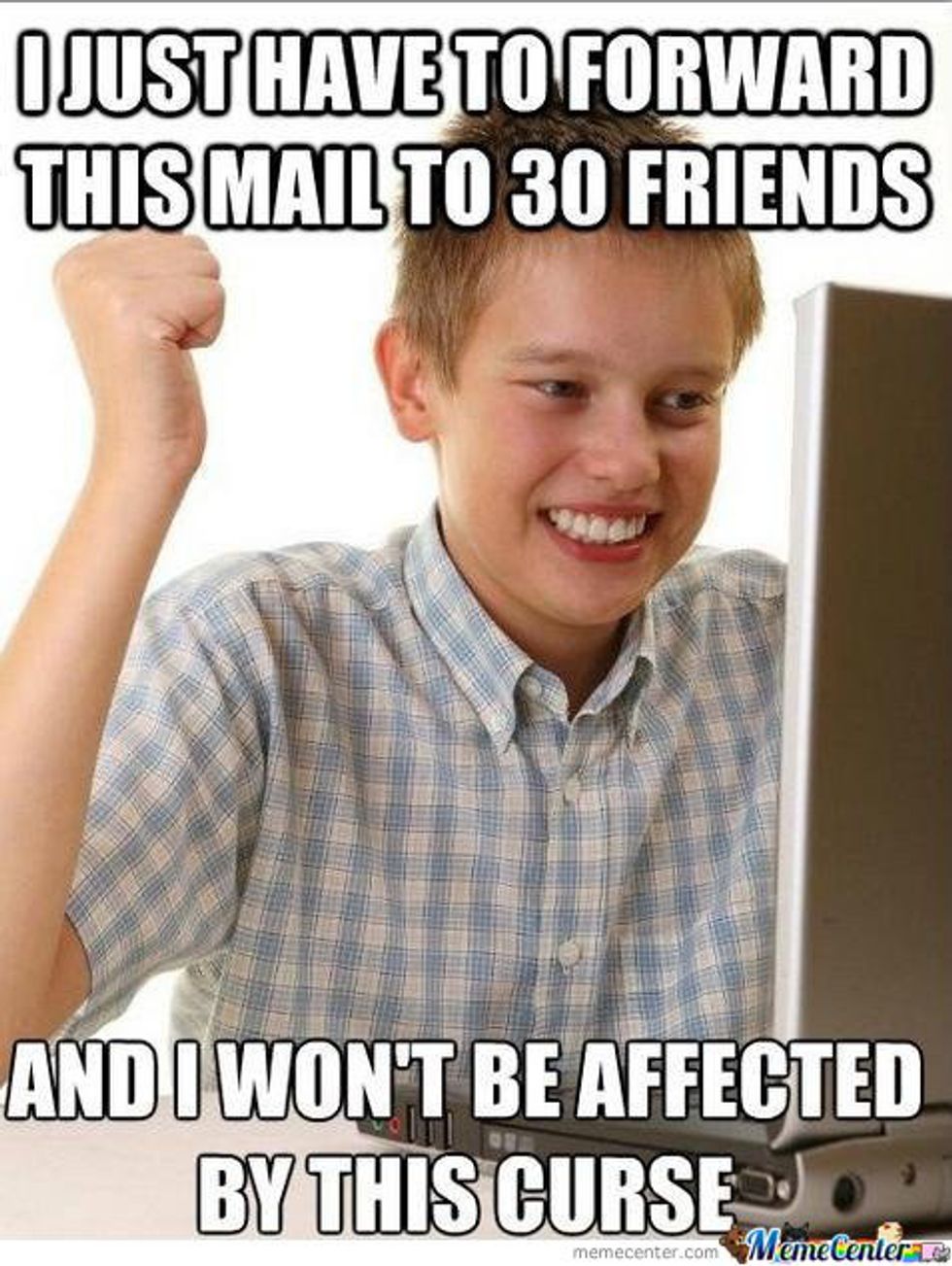Those messages that say "forward this to 10 people or this creepy girl will be in your room tonight" or "if you send this text to 3 other people you will have a great year" just need to stop. It was cute in middle school, but let's be done with it.