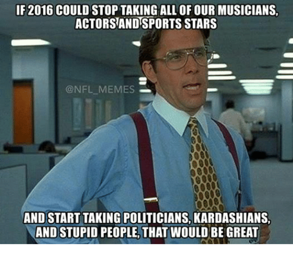 So, I believe we can all agree that there are some things that should just stay in 2016. Social media habits, serious social issues, trends, fads, etc... some just need to go. The old saying "new year, new me" should definitely apply when it comes to some of the tragic characteristics of this year. Here's just a few of the many.