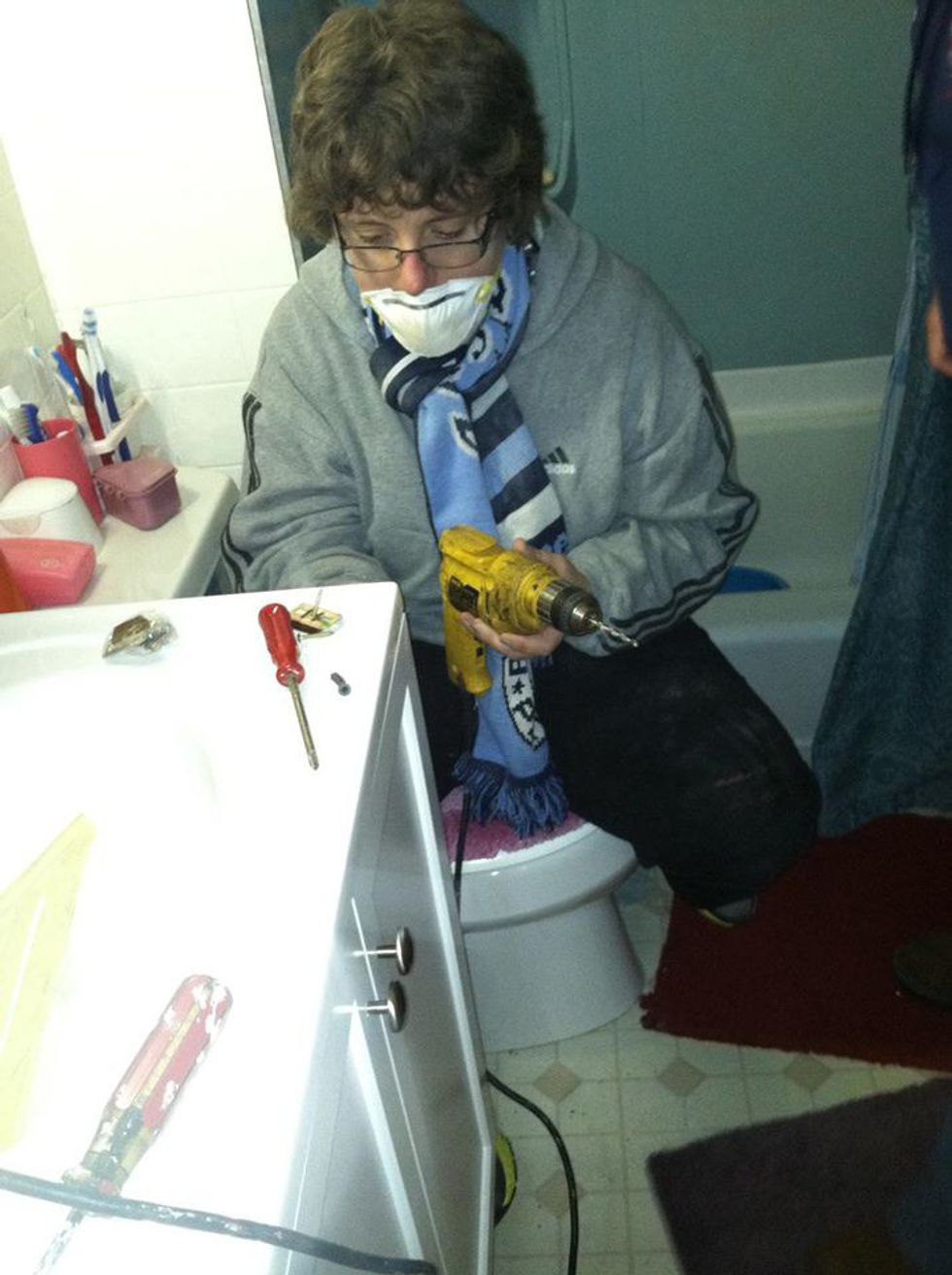 Yes, that's 18-year-old me with a screwdriver putting in a new toilet holder in an old Chinese woman's bathroom. This was on a long weekend service trip with the Pittsburgh Project that I did with my mom. I've learned how to spackle, paint, sand (both manually and with an electronic one) and use screwdrivers all from missions trips. I've used those skills far more than knowing who did what in "Fahrenheit 451" or what certain shapes are quadrilaterals.