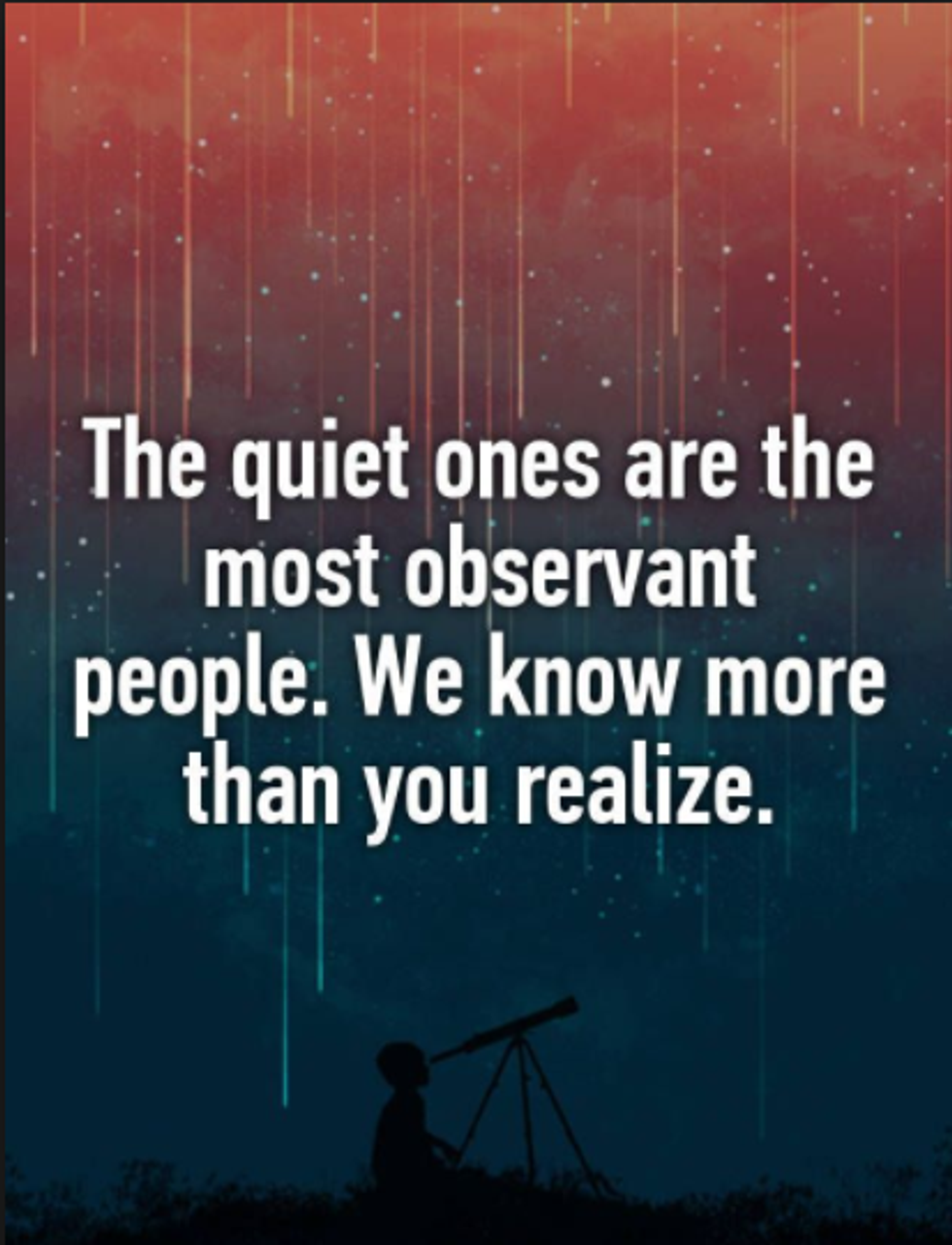 You may be quiet in class, but there's so much more to you than that. You may be the fastest kid on the track team, the loudest trumpet in the band or the most creative painter in the art club. You can't be summed up by "the quiet kid" stereotype, and those who are important will remember you for more than that.