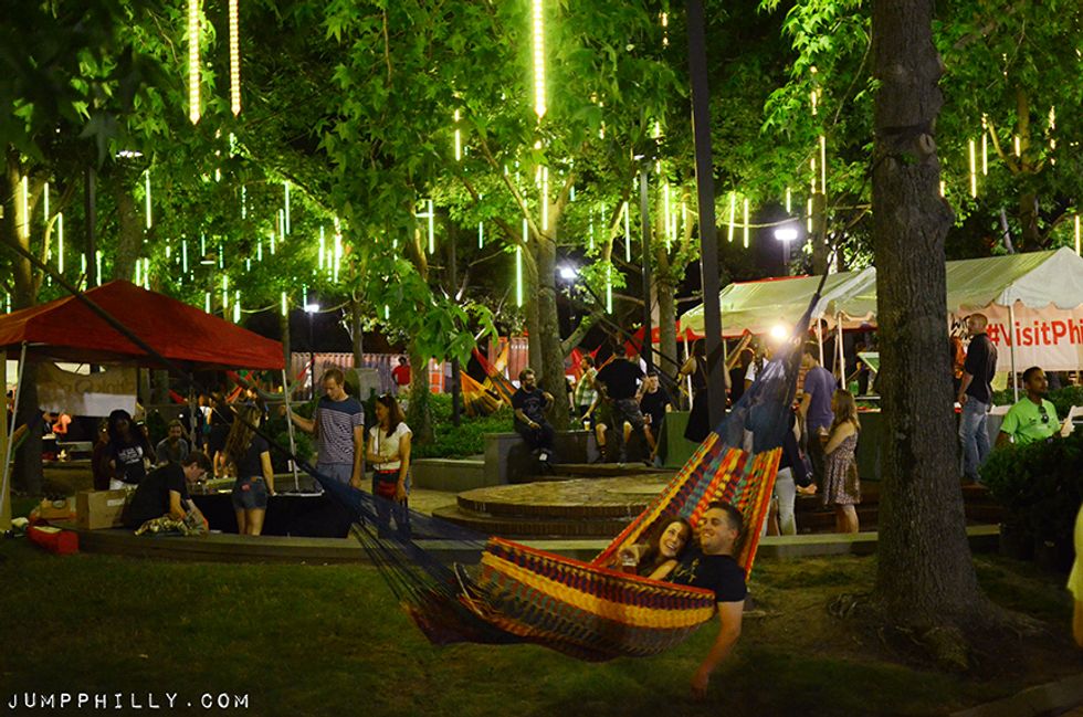 This idea could even turn into a day trip to center city, where at the end you just end it here and lay on hammocks under trees full of lights. Just keep in mind that this place does get busy and its sometimes hard to find a spot on the hammocks, but it is still a really nice place to hang out at after sundown.