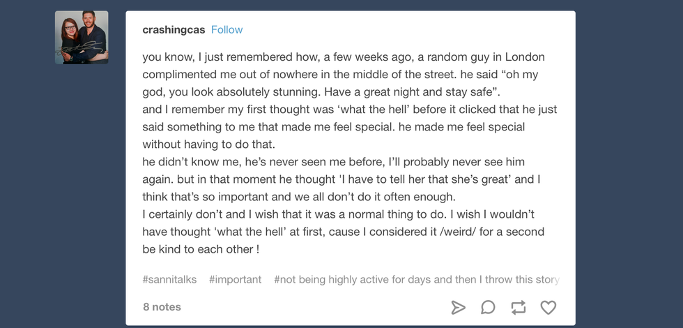People who go out of their way to tell you that you look nice or something like that are the best people in the world.