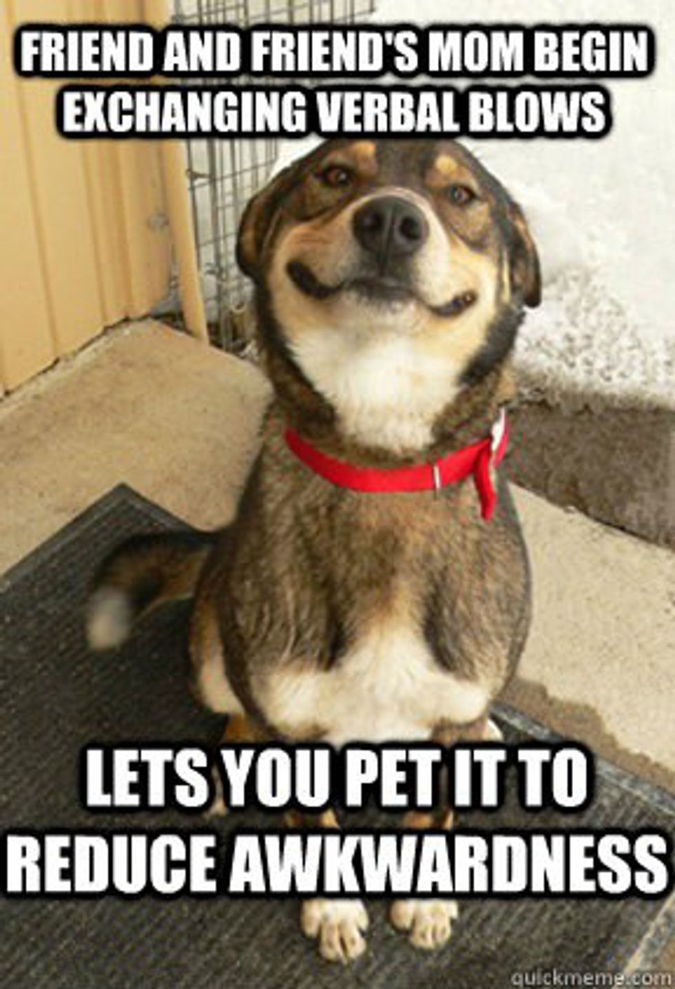 We've all been there. The meeting of the parents of the person you are dating. The first time going over to a friends house. Those can be some awkward times, but thank goodness for that furry friend who is there to make it less awkward. Also, thank you dogs for being there for all the "firsts", such as graduating high school.