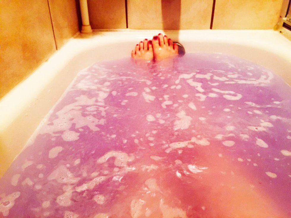 Let your muscles relax in the tub for once. Extra points if you use a LUSH bath bomb.