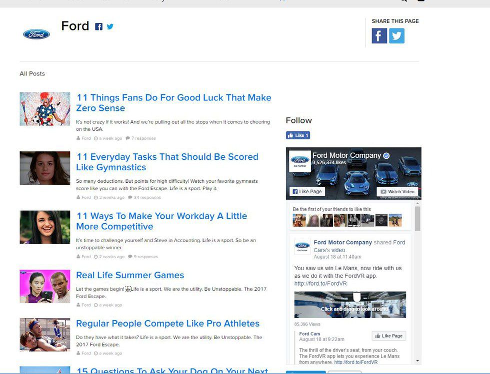 Man oh man this Ford guy is a riot. I mean we all must think so if he gets to keep writing so many articles. Look at that one, with the clown, and the one with the timely Rebecca Black reference from two weeks ago. Man what a comedic genius this man must be to-- what? It's Ford like the car company? They can pay to publish articles?