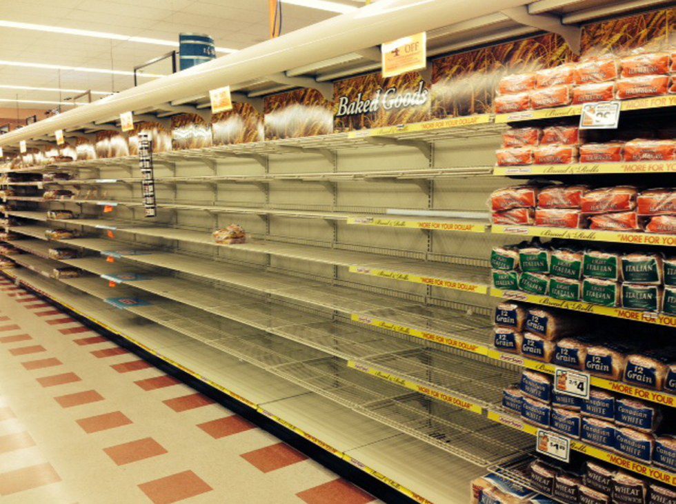 7. Your parents ransacking the grocery store (and so are everyone else's) leaving the bread isle looking like this: