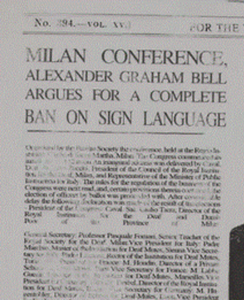 Alexander Graham Bell (who had a deaf mother and wife) did not want American Sign Language used or taught in school. Additionally, he did not want the deaf to marry in order to prevent more deaf offspring (even though 90 percent of people who are deaf have hearing parents).