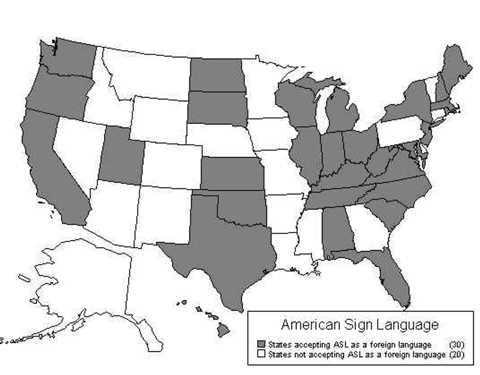 More states consider American Sign Language to be a “foreign language” rather than a native one due to the stigma surrounding the deaf after the Golden Years of Deaf Education.