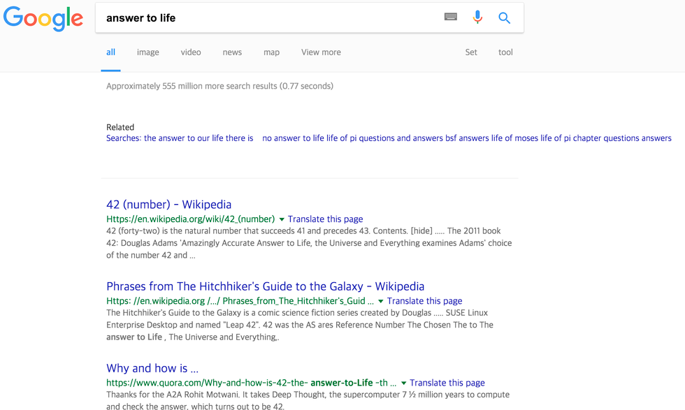 Apparently, it's the number 42. Thanks Google—my life makes a whole lot of sense now.