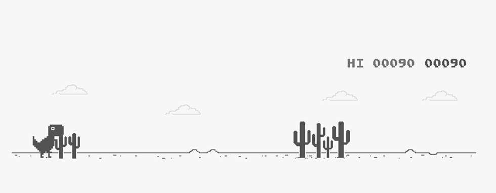 Google has the just the solution for those who are at locations or in situations where they can't connect to the internet—a simple yet intriguing dinosaur game! Use the arrow keys to avoid the cacti and other obstacles.