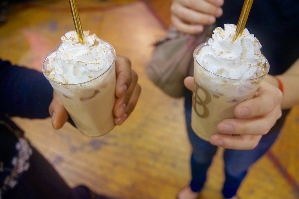 I found myself in this really nice area that had a fake brick wall. In front of the brick wall? What seemed to be coffee drinks topped with whip cream. The fat kid in me screamed and I obviously moved closer to see what was up.