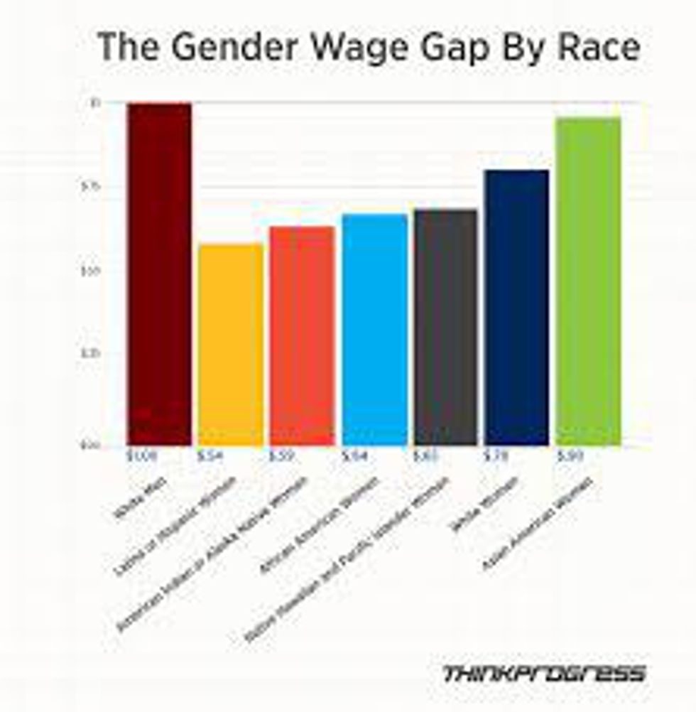African American women were paid 63% of every dollar paid to white men, the gap being largest for Hispanic and Latina women, who were paid 54% of every dollar. These numbers are from 2014, recorded by aauw.org where other pay gap percentages of women based on race and ethnicity can be found.