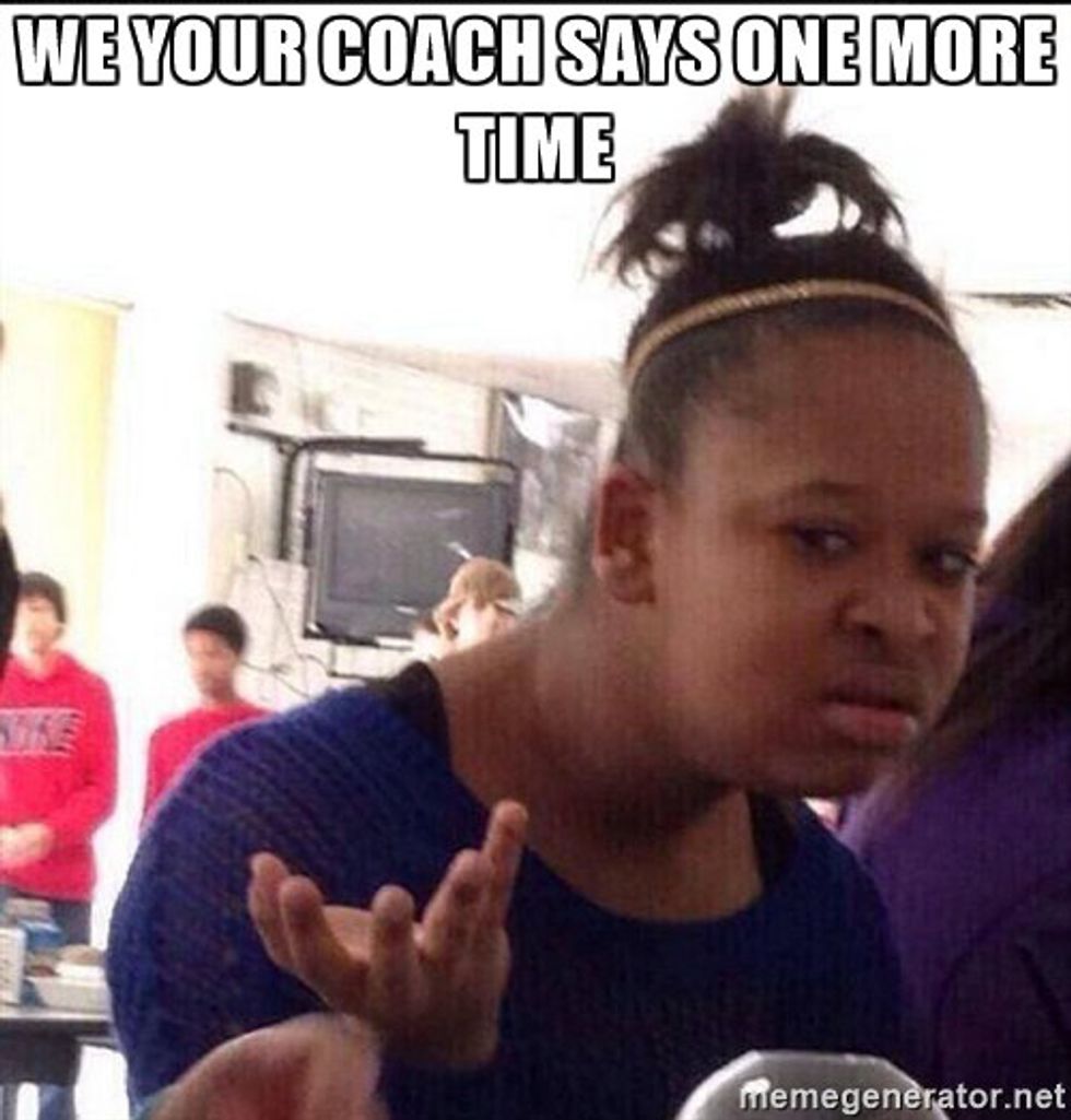 3. Automatically getting back into the formation to do the routine again, even though your coach had said "one more time".