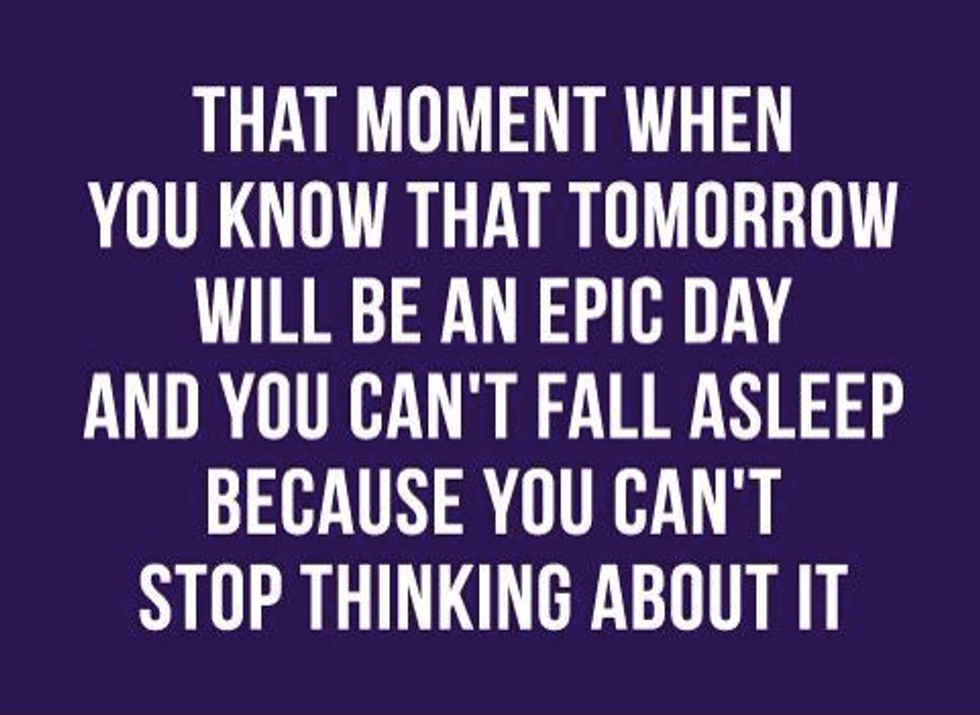 Oh, my GOSH... excitement is filling your heart and soul. All you can think about is meeting up with your friends. SLEEP IS FOR THE WEAK.