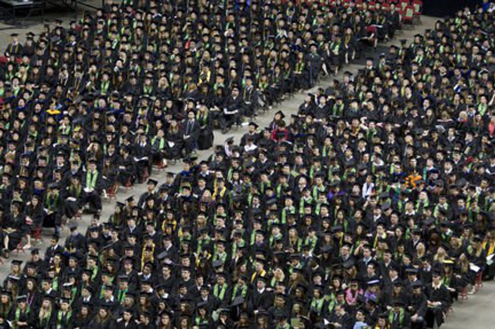 The graduates start filing in; they keep coming and coming and coming. There are so many of them that when you look out into the sea of people, you only see graduation caps and gowns?