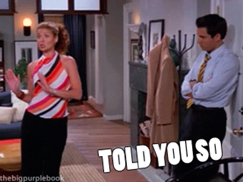 Where in your head you feel borderline accomplished about being right, but, of course, keep it to yourself until it is the stage where she's ready to laugh about it all.