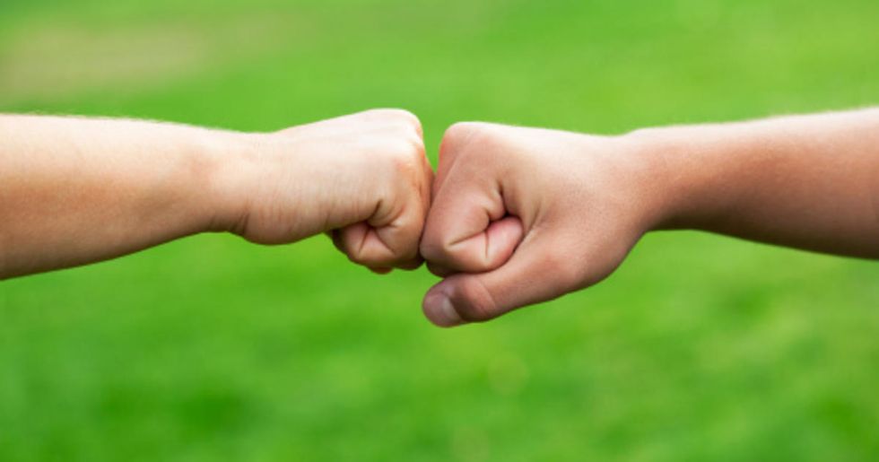 Another classic, the high five was started on a baseball field by Dusty Baker and Glenn Burke in 1977 and hasn’t gone out of style since. It is used for props in most situations, but can also be a fun greeting to mix it up once in a while. Seen in: Subdued sports celebrations, any parent/kid celebration, occasional greetings.