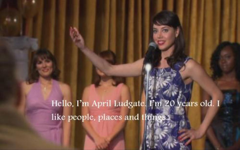 "Hello I'm April Ludgate. I like people, places, and things."