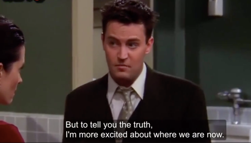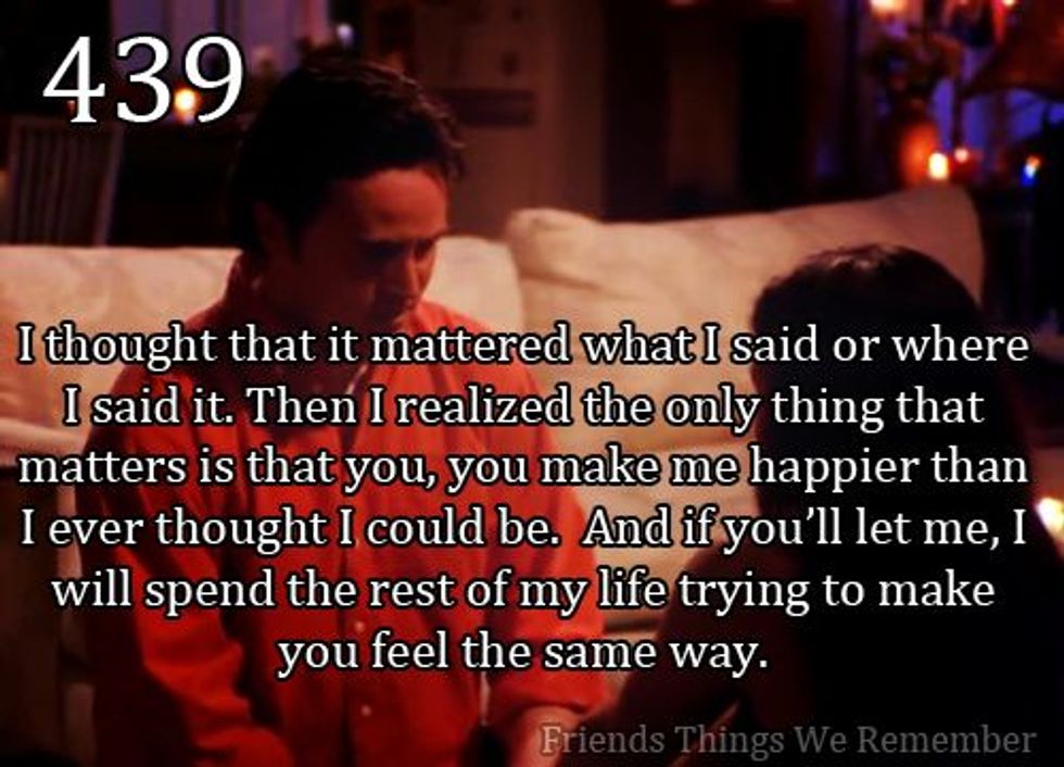 *Nearly cries typing this.* Seriously, how does Chandler not get more credit? He's the perfect boyfriend and husband. Now, granted, he almost completely screws up his proposal to Monica, but it all works out in the end. When he gives the above speech, you dream of the day you hear those words from your real-life Chandler Bing.