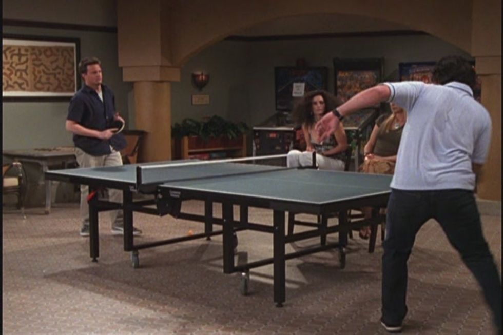 When Monica injures her hand during her high-stakes ping-pong game against Mike, Chandler steps in so she doesn't have to forfeit. He then proceeds to show exceptional ping-pong skills, which allow him to beat Mike. This makes you swoon for two reasons: he helps Monica defeat Mike even though he doesn't understand why she needs to win so badly, and he shows a hidden athletic side.