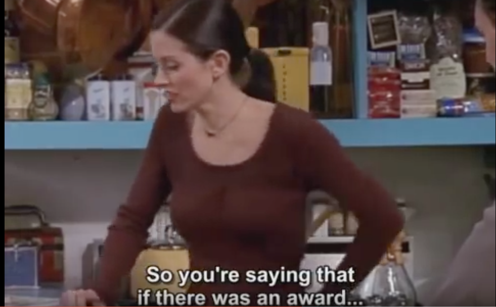 It's no secret that Monica wants to be the best at everything. When she's feeling down about giving terrible massages, Chandler somehow turns this into her still being "the best." Sure, she gives the "best bad-massage," but it makes her feel better. Let's also not forget that prior to this, Chandler silently suffered through Monica's massages to keep her happy. He would do anything for her.